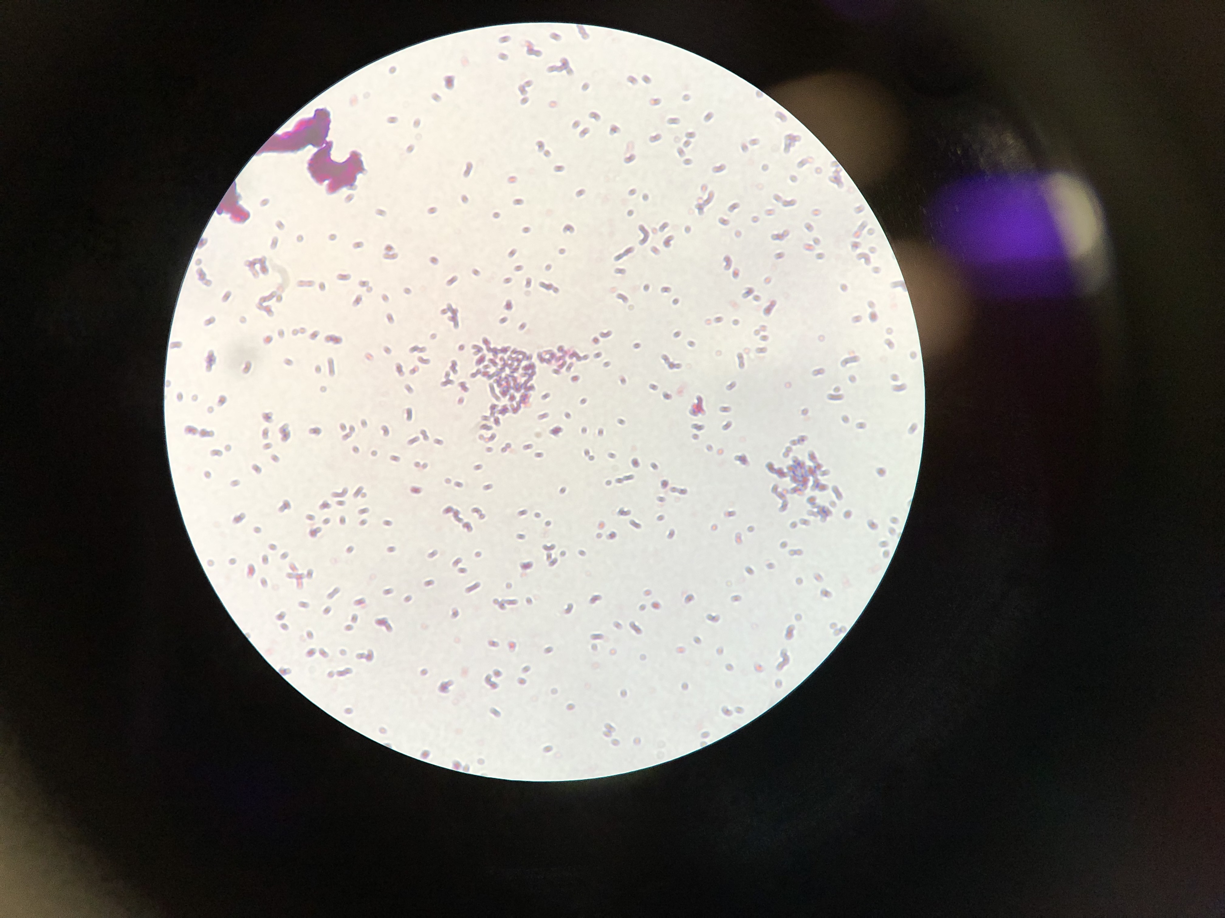 前回の新種発見の続きで、同定作業前にやっぱり待ってられないっていうことでグラム染色して顕微鏡でのぞいてみました。