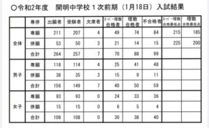 開明中学入試2020、1次前期、1次後期、入試結果!