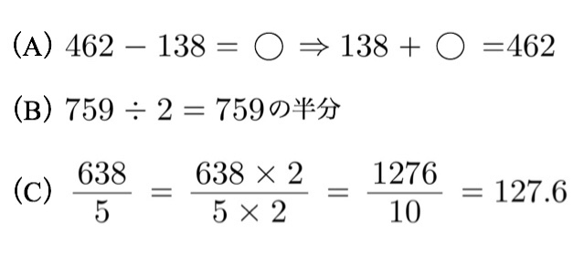 ですから、462から138を引くのではなく『138に何を足せば462になるか?』と考えれば筆算しなくても計算出来るはず。