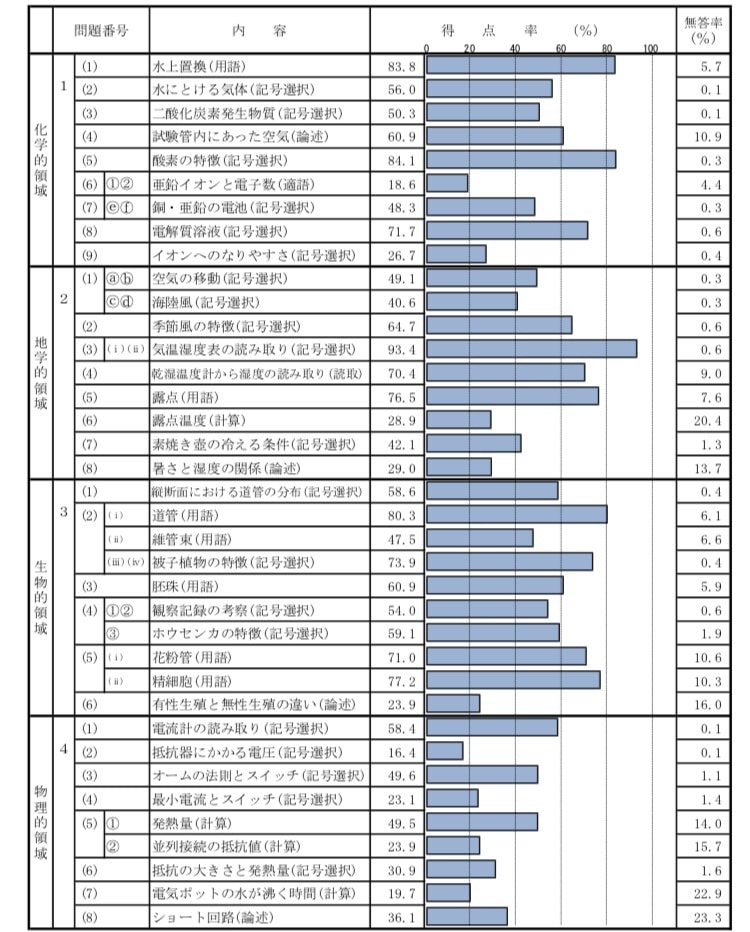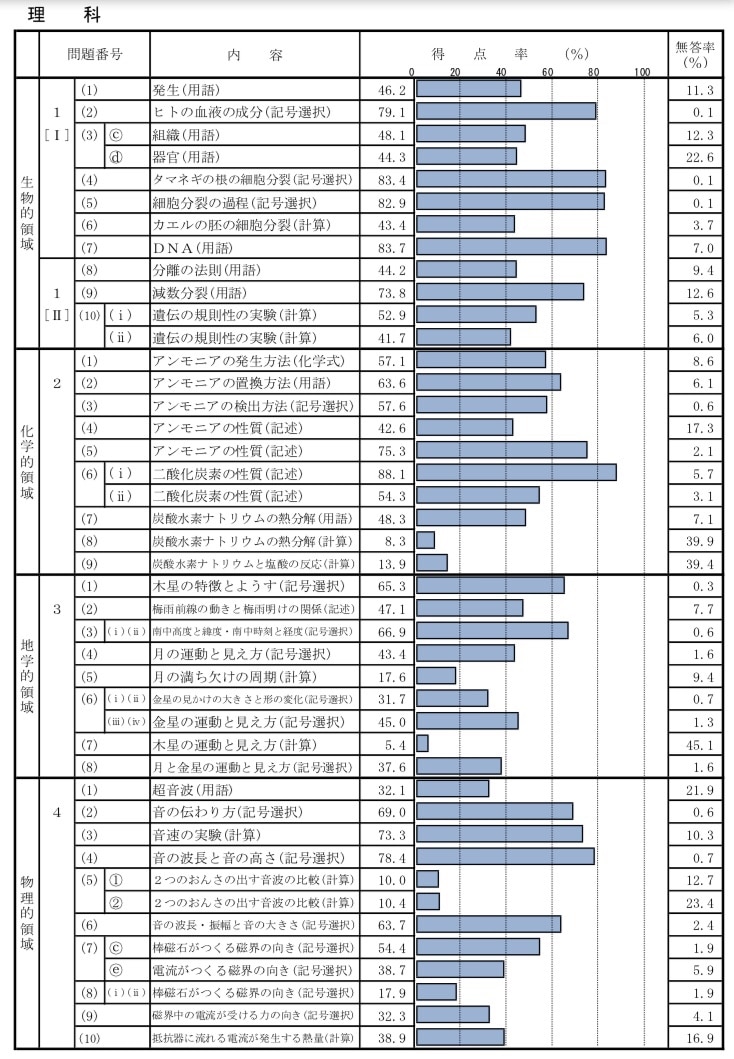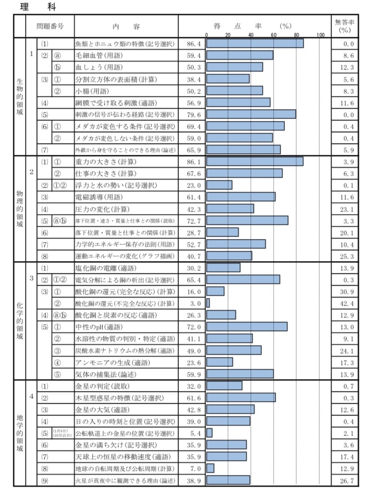 しかし、理科や社会の平均点は全日制の高校を受験し合格した生徒全員が母数となります。(まぁ、この調査は標本調査なので生徒全員とは言えないのですが)