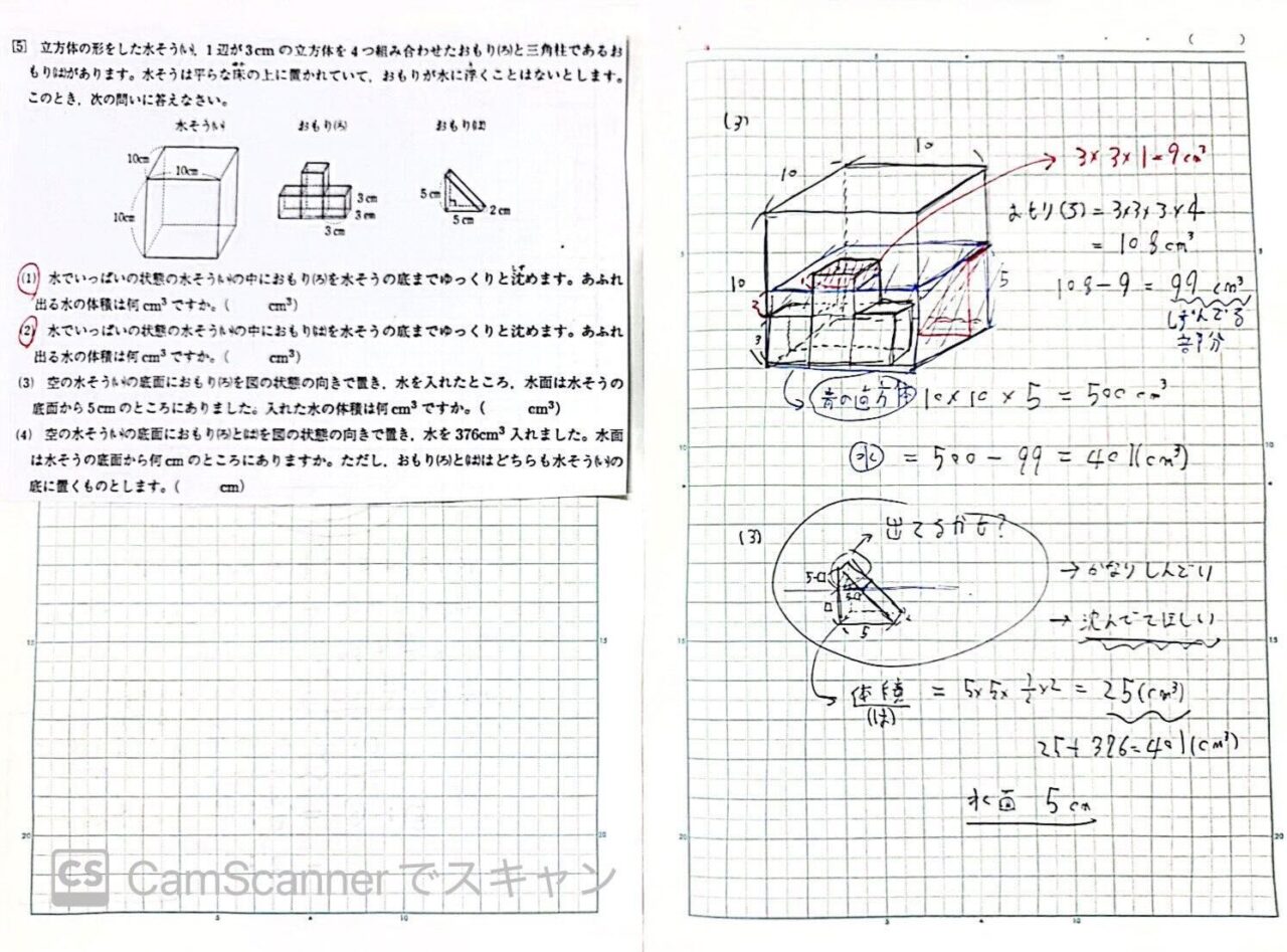 立式や計算、記述内容はもちろん、授業中の受け答えも確認しています。こちらの質問に対してズレた回答が返ってきた場合はそのたびに指摘します。何を問われているかをしっかり意識させます。
